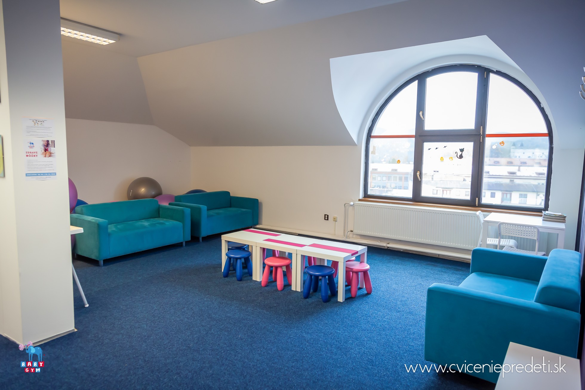 - aktivity zóna vybavená špeciálnou podlahou, po ktorej sa môžu malé nožičky bezpečne a hlavne prirodzene pohybovať (nebojte sa, ani zimka im nebude)